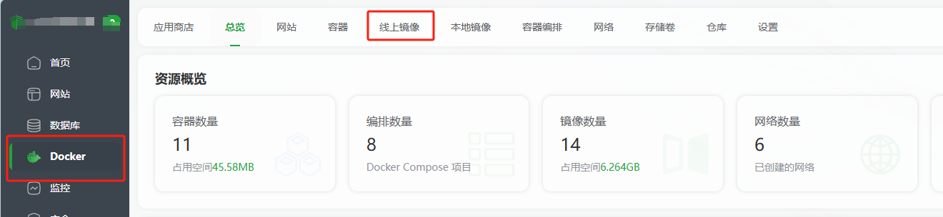 这里我还是以宝塔自带的docker为例,